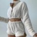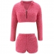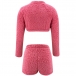 Solid Color Long Sleeve Stand Collar Plush Crop Top+High-waist Shorts Two-piece Set