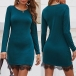 Solid Color Round Neck Lace Spliced Hem Long Sleeve Slim Fit Dress
