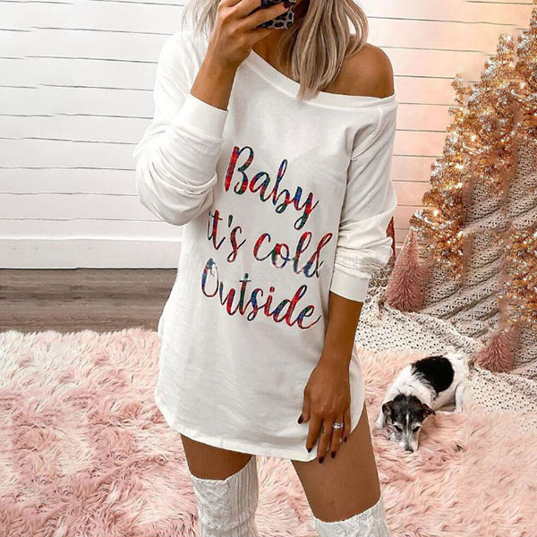 Looking for a simple and cozy dress for your autumn fashion look? Pay your attention on this piece. It comes with solid color and round neck, finished with the colorful letters printed details and long sleeve design. Simple design and breathable fabric, which make this piece extraordinary!