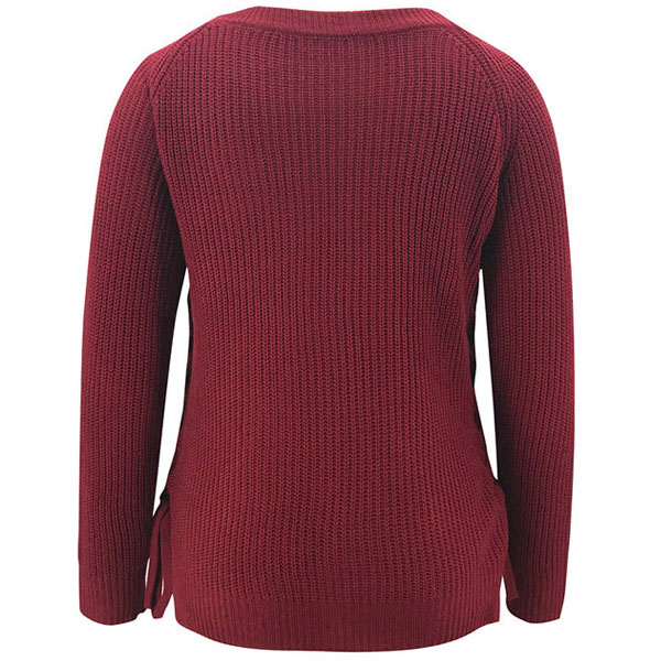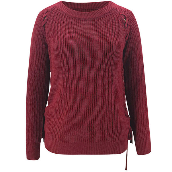 A good knitted top is not only easy to wear inside and outside, but also can show your alluring figure. This piece comes with solid color, round neck and long sleeve, finished with the split hem decorated with cross drawstring, which can showcase your attractive waist line. Standing in the crowd, you must be the most unique girl!