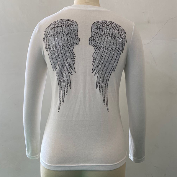 Among the the fashion items, slim fit top should be one of the most popular pieces. The fit silhouette design can showcase your slender body-line. It comes with round neck and long sleeve, finished with the wing printed pattern on the back. this chic piece is worth to have a place in your wardrobe.