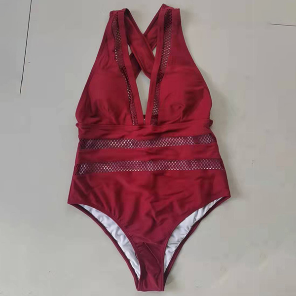 Solid Color Shaping Swimsuit with Semi-through Net Design