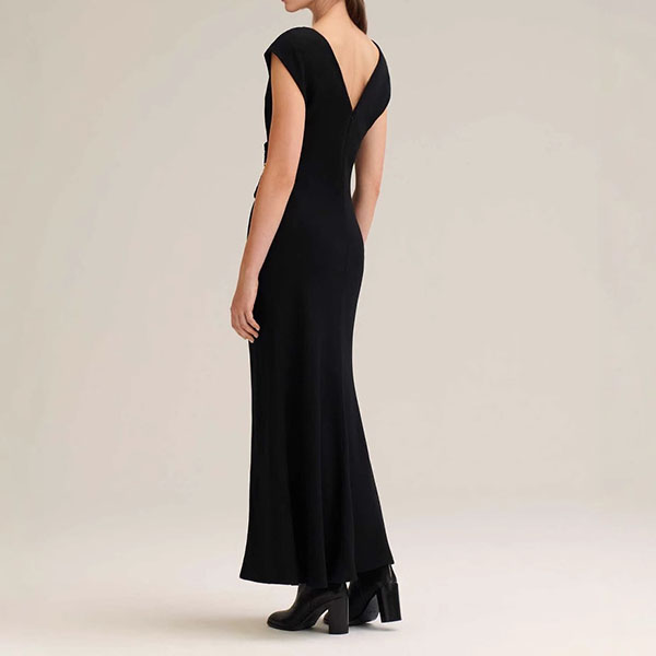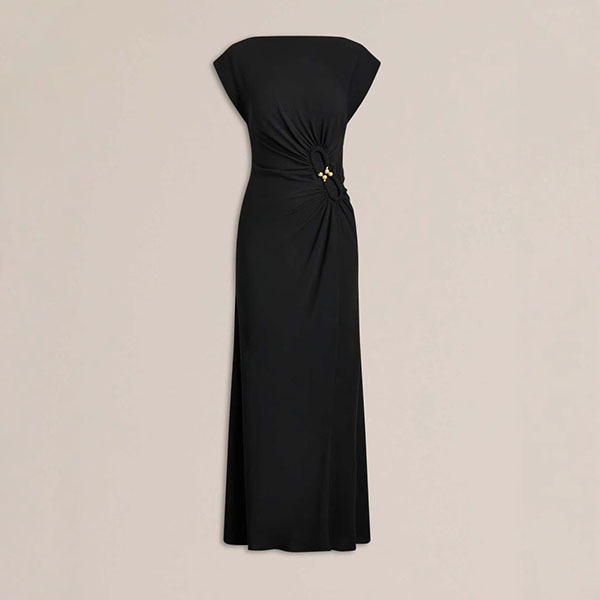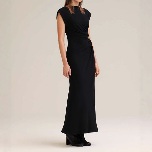 Solid Color Simple Atmospheric Pleated Button Embellished Long Dress