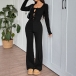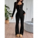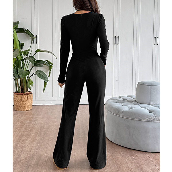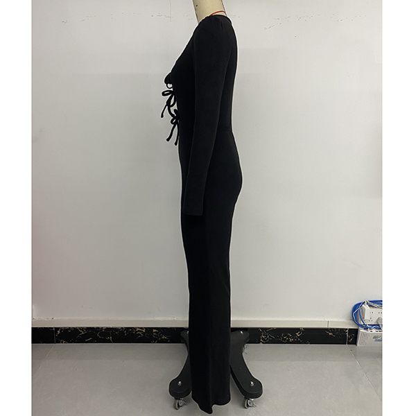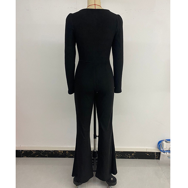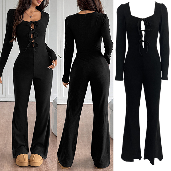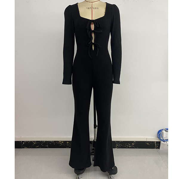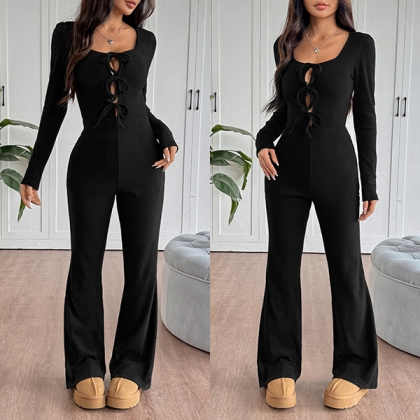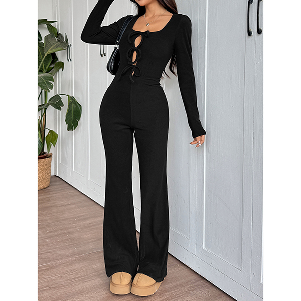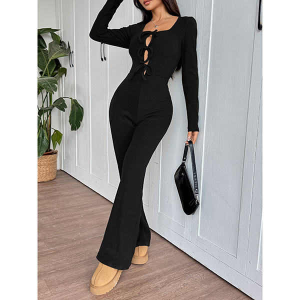 Solid Color Slim Fit Flared Jumpsuit with Chest Bow Tie Detail