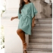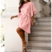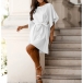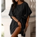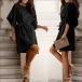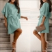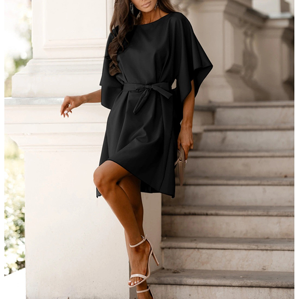 Solid Color Trumpet Sleeve Dress with Waist Tie