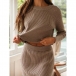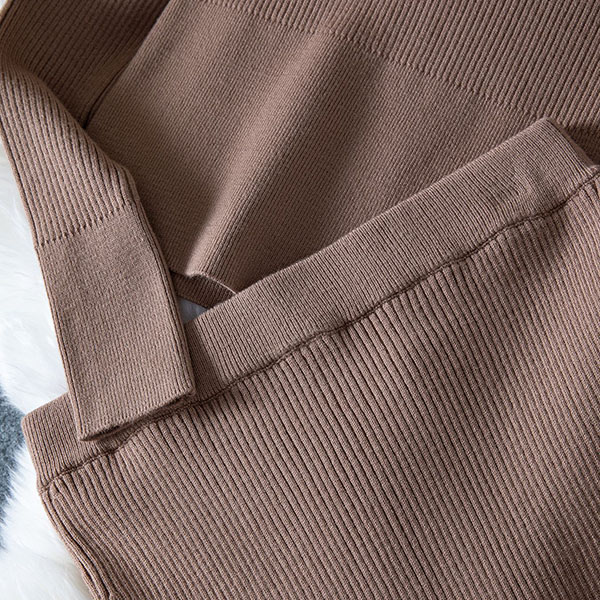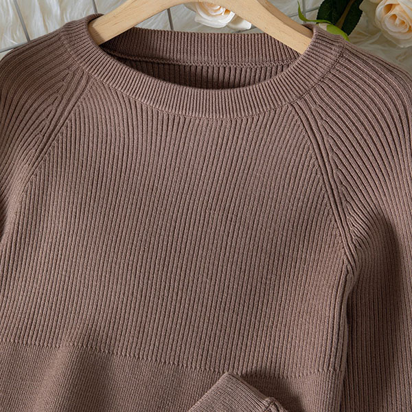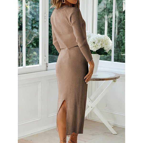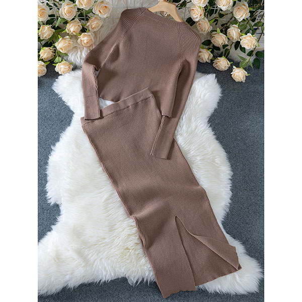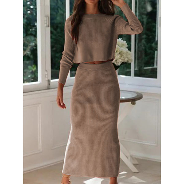 Solid Color Two-Piece Knit Set with Round Neck Pullover Sweater and Elegant Skirt