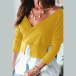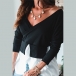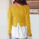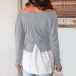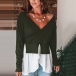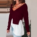 Solid Color V-neck Irregular Hem Spliced Long Sleeve Top