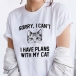 What a cute shirt! -Sorry, I can't! I have panns with my cat!