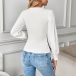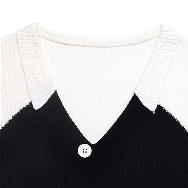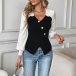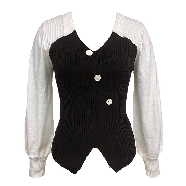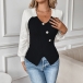 Fashion Contrast Color V-neck Button Long Sleeve Front Slit Shirt