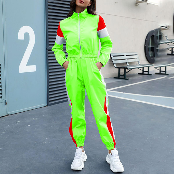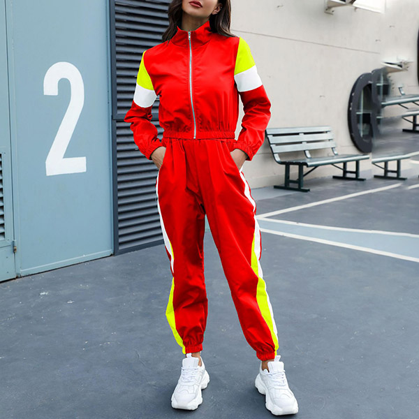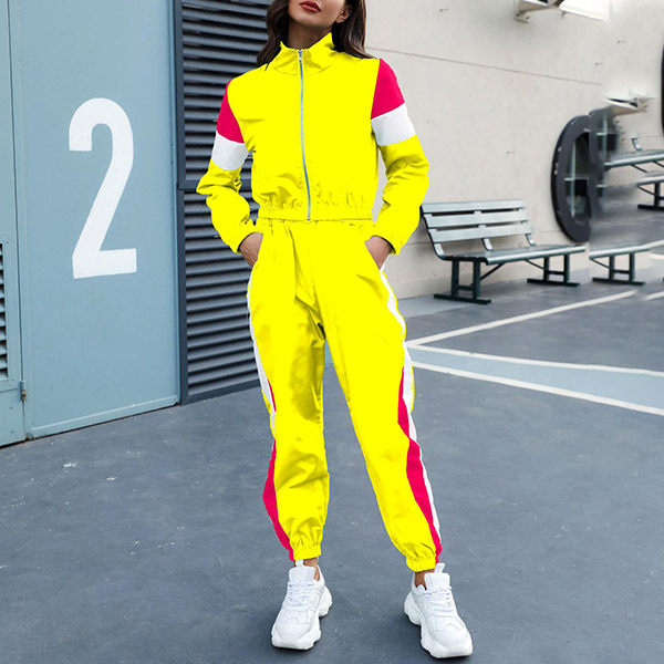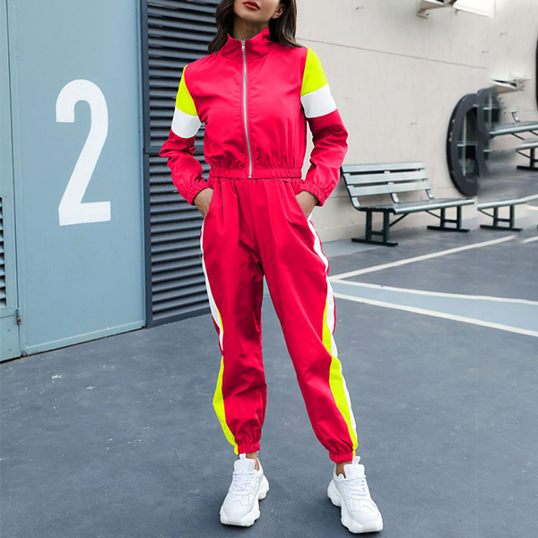 Sports Style Contrast Color Long Sleeve Stand Collar Sweatshirt Coat + Pants Two-piece Set