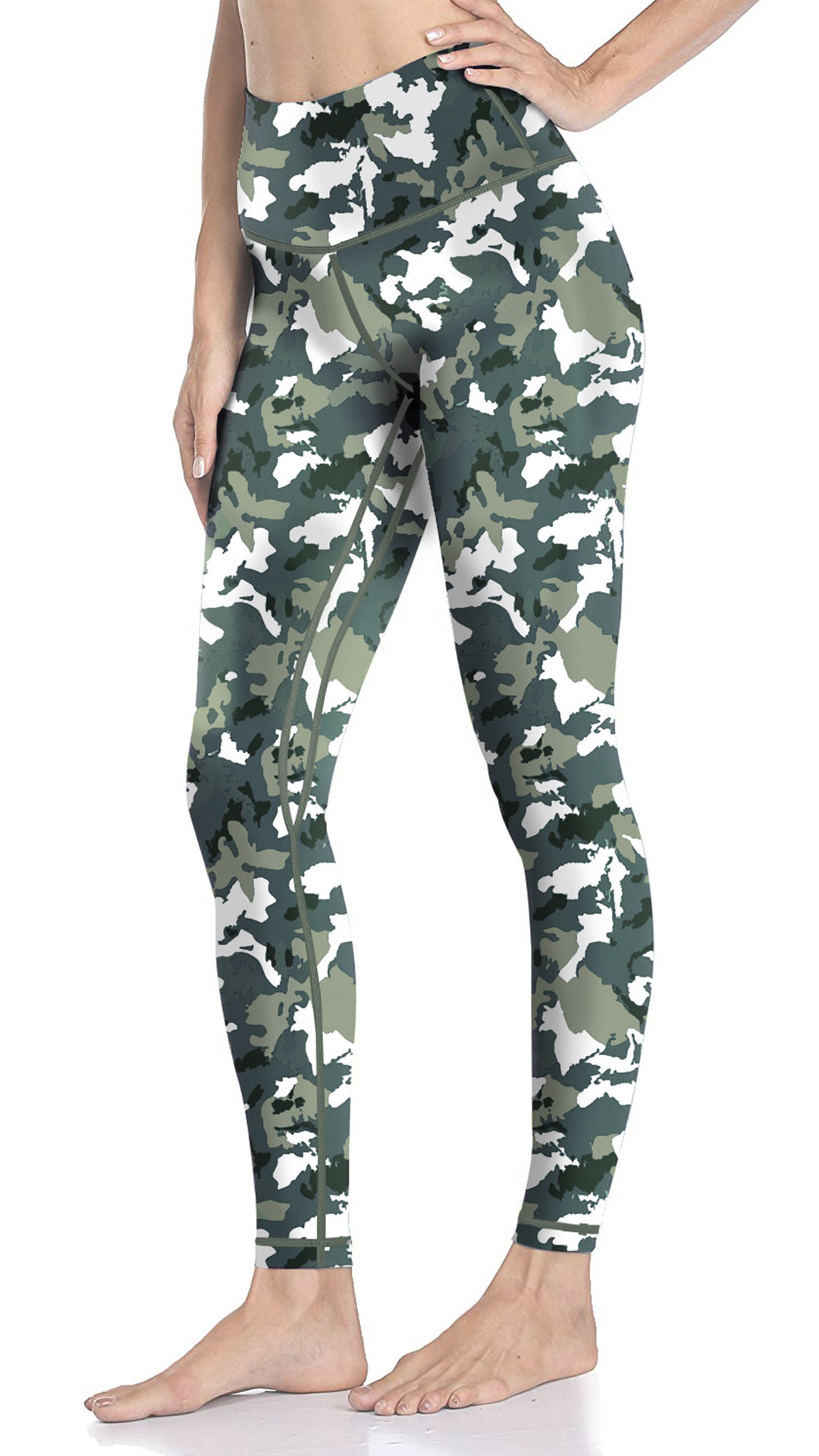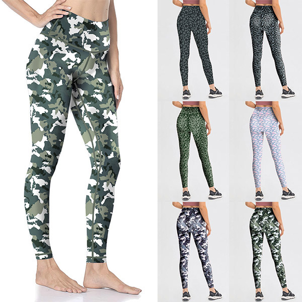 Leggings extensibles taille haute imprimés léopard/camouflage style sportif