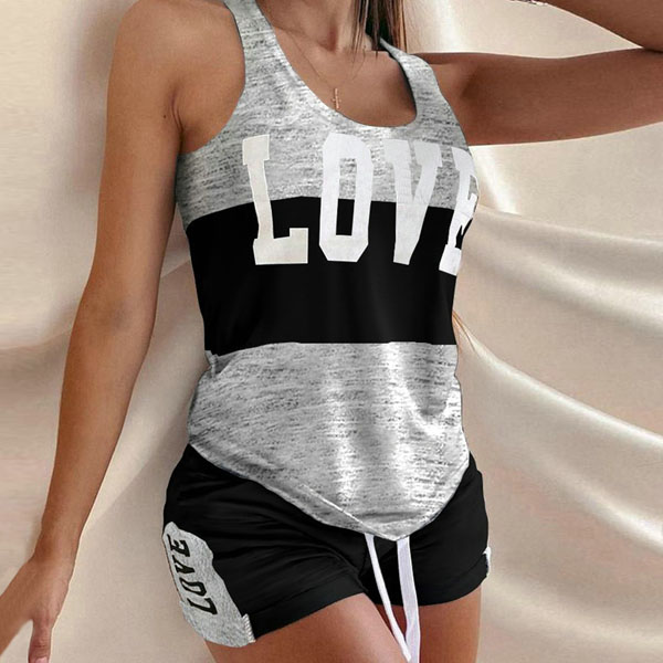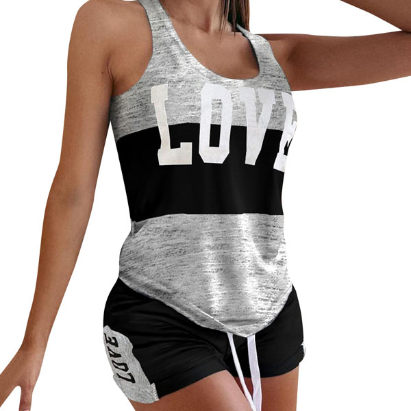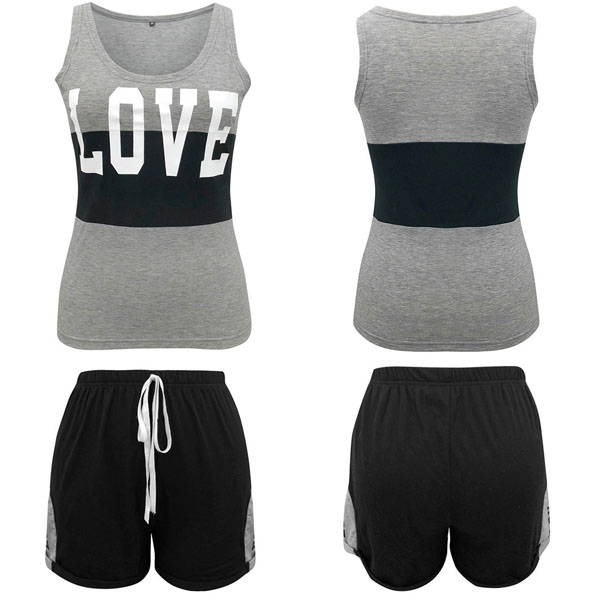 As for your sports days,this cozy yet stylish sports suit can be your perfect partner. Contrast color element and letters printed details make it look not so simple and dull. Including a sleeveless round neck tank top and a shorts,its super soft and breathable fabric can give you an utmost comfort.