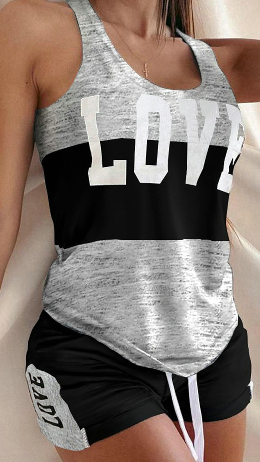 Sports Style Letters Printed Contrast Color Tank Top + Shorts