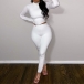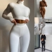 Sports Style Long Sleeve High Collar Crop Top + High Waist Leggings Sports Two-piece Set