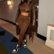 During your sports time,you can showcase your perfect figure through this sports two-piece set. Solid color style,including a long sleeve igh collar crop top and a high waist leggings,crafted from soft and breathable fabric,this two-piece set can give you an utmost comfort.