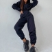 Sports Style Long Sleeve Hooded Elastic High Waist Jumpsuit