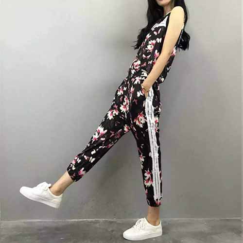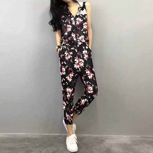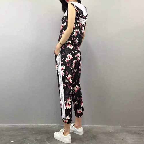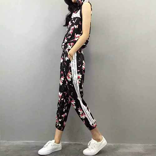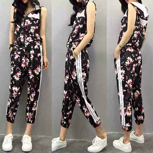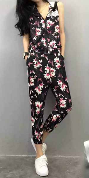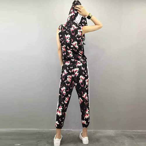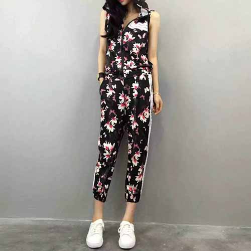 Boasting a vibrant and eye-catching floral print,including a sleeveless hooded tops and an elastic