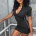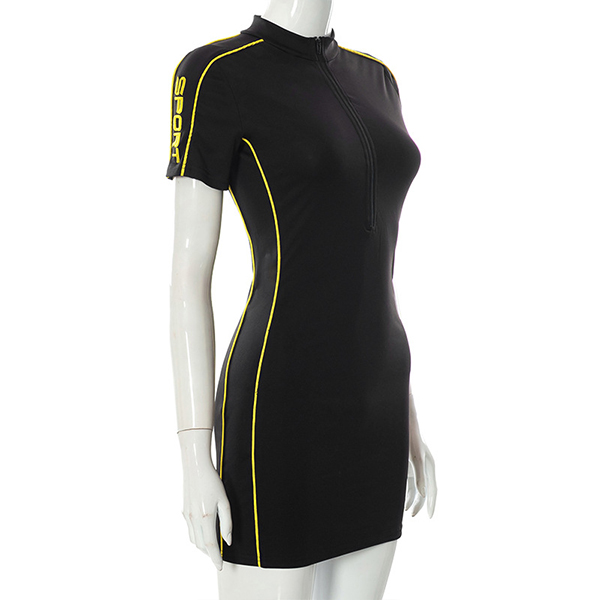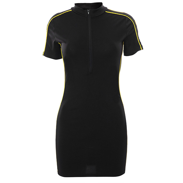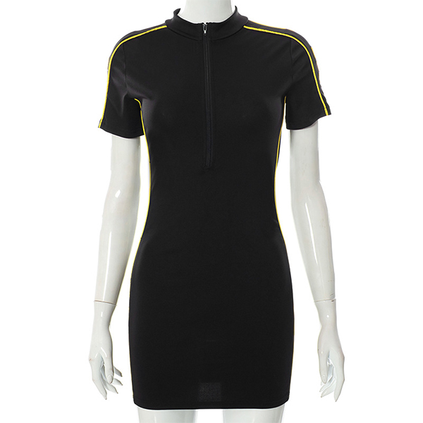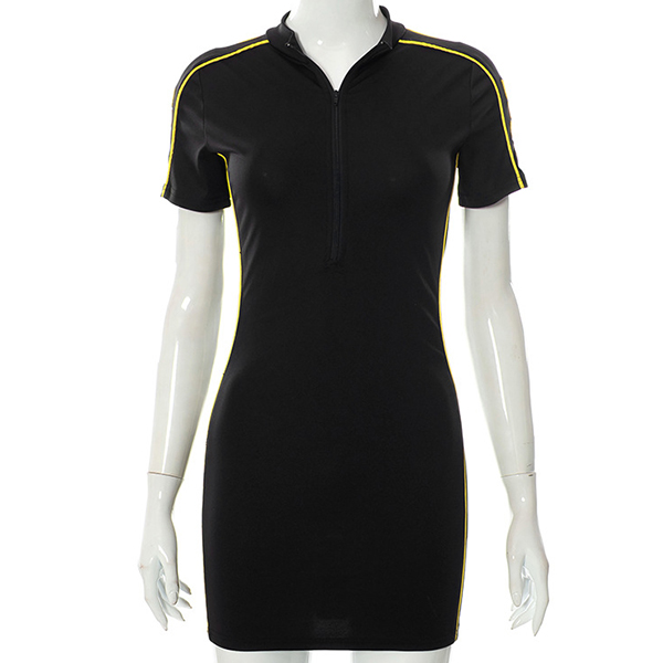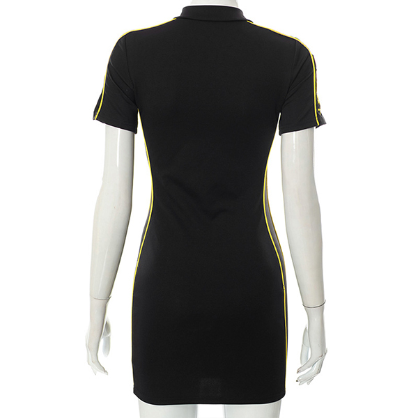 Sporty Contrast Color Stripe Printed Mock Neck Zipper Shirt Dress