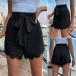 Sporty Solid Color Irregular Hemline Bow Tie Shorts