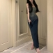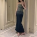 Strapless Denim Bodycon Dress with Gradient Midi Skirt
