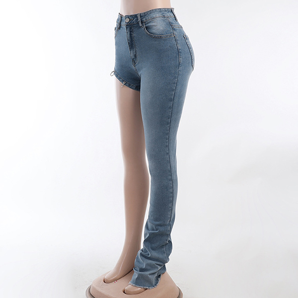 These versatile jeans can be worn as a full-length pant or as a stylish asymmetrical shorts and jeans, thanks to the detachable bottom portion. The distressed details add a touch of edge.
