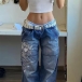 Street-chic Floral Printed Wide-leg Denim Jeans