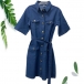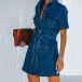 Street-Chic Polo Short Sleeve Tie-belt Denim Shirt