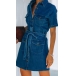 Relaxed-fit shirt in cotton denim. Collar, buttons at front. Chest and bottom pockets with flap and button, short sleeve and tie-belt, it could be a short shirt dress or traditional denim shirt.