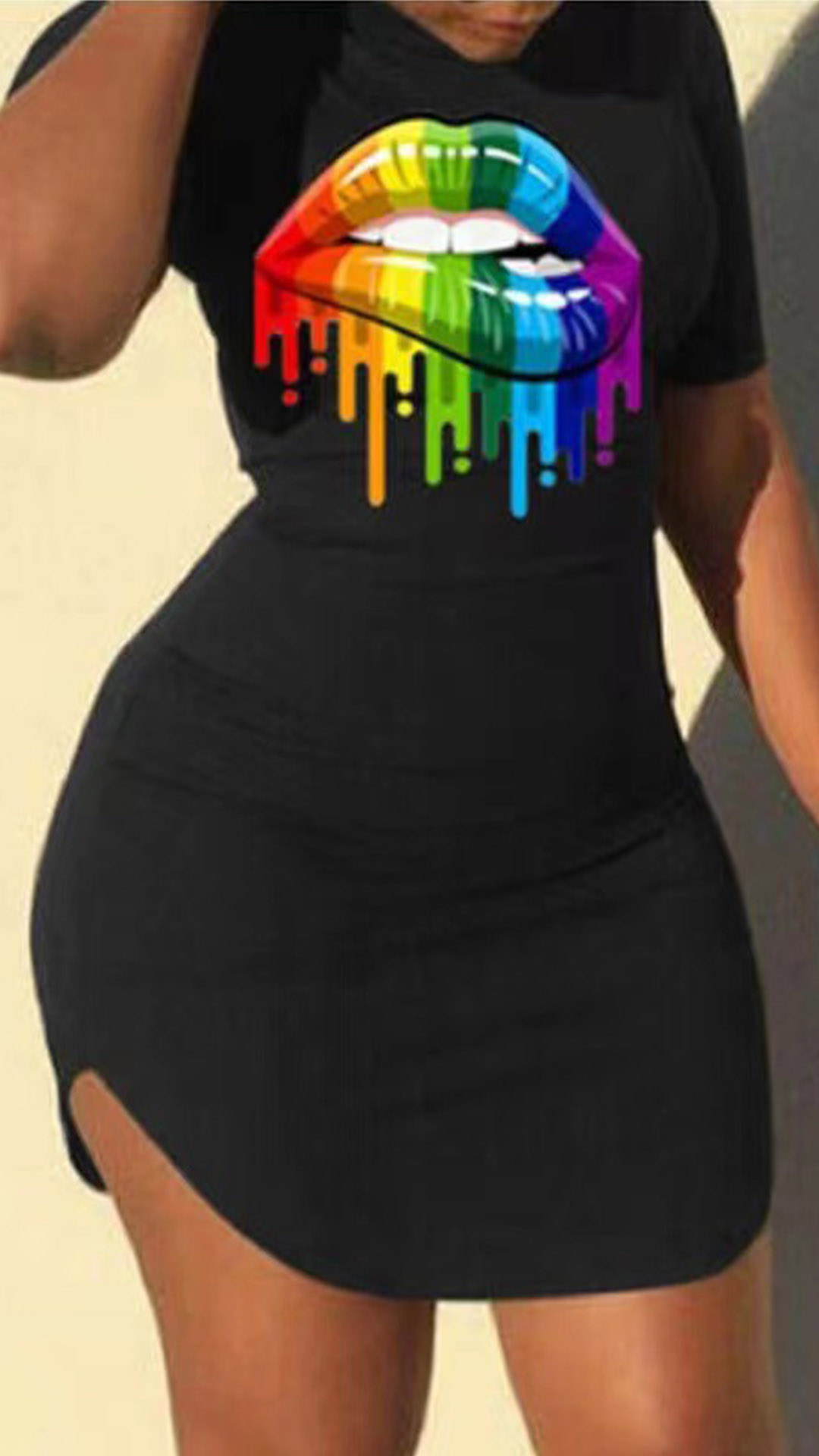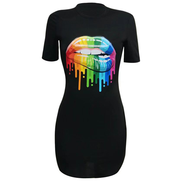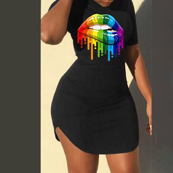Street Chic Round Neck Short Sleeve Lip Printed Bodycon Dress