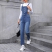 Street Fashion Adjustable Shoulder Strap Straight-cut Denim Jumpsuit