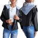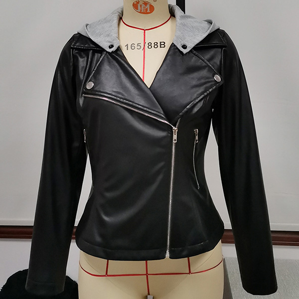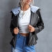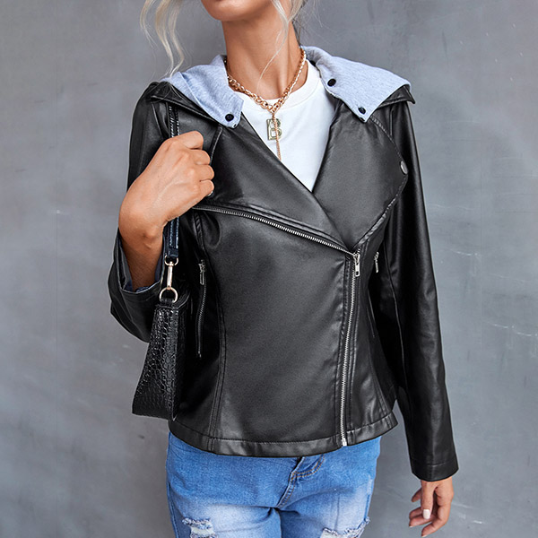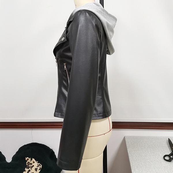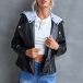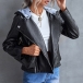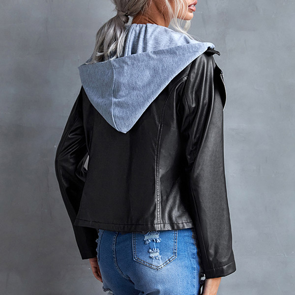 Street Fashion Artificial Leather Notch Lapel Detachable Hooded Jacket