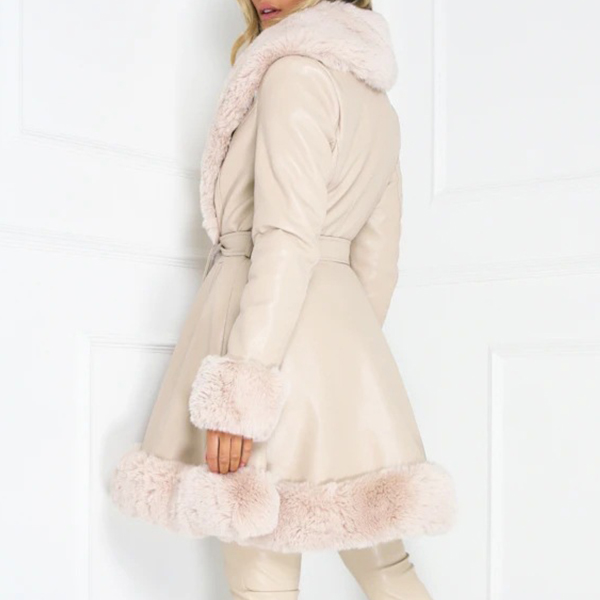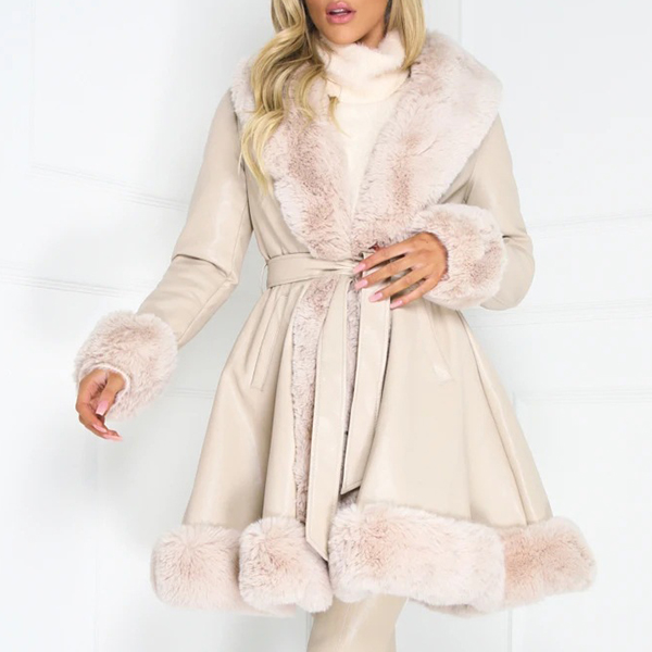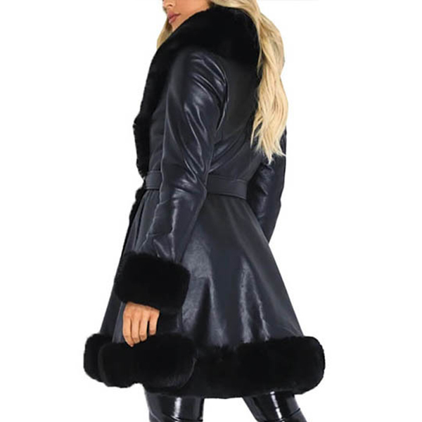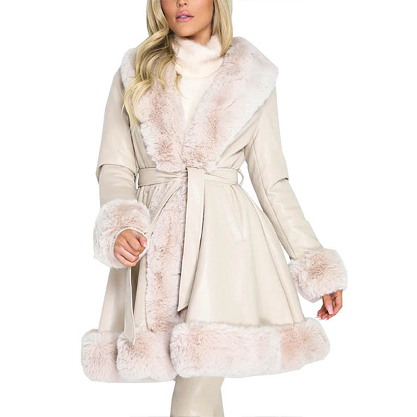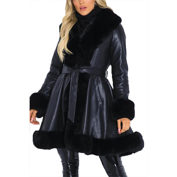 This coat is the epitome of edgy street fashion, combining artificial leather and artificial fur for a bold and unique look. The spliced design adds a modern and eye-catching element, creating a stylish contrast between the materials. The coat features a self-tie closure, allowing you to adjust the fit and add a touch of personalization to your outfit. Embrace your inner fashion rebel and turn heads with this trendy and fashion-forward coat.