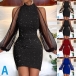 Street Fashion Bling-bling Gauze Spliced Long Sleeve Mock Neck Bodycon Party Dress