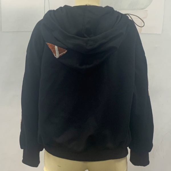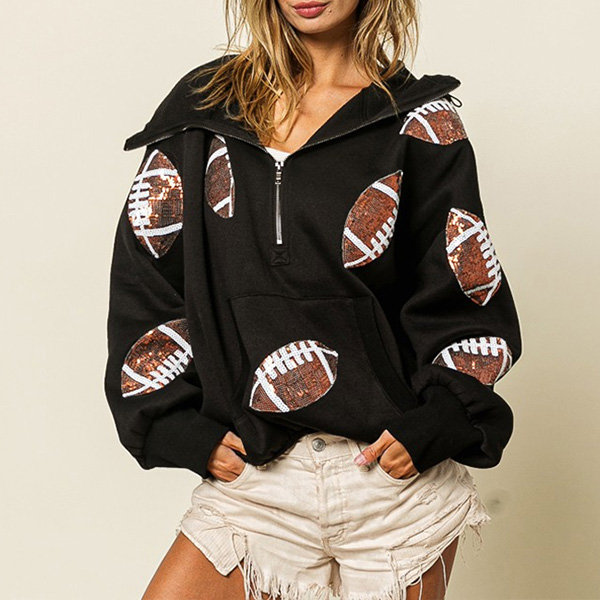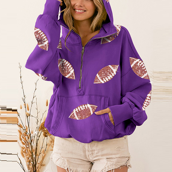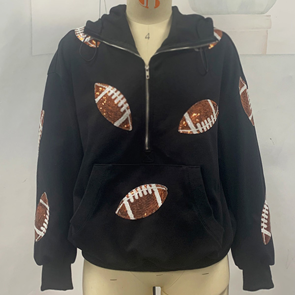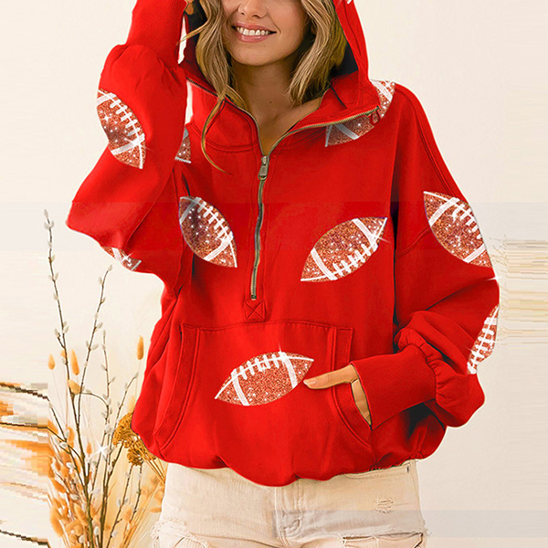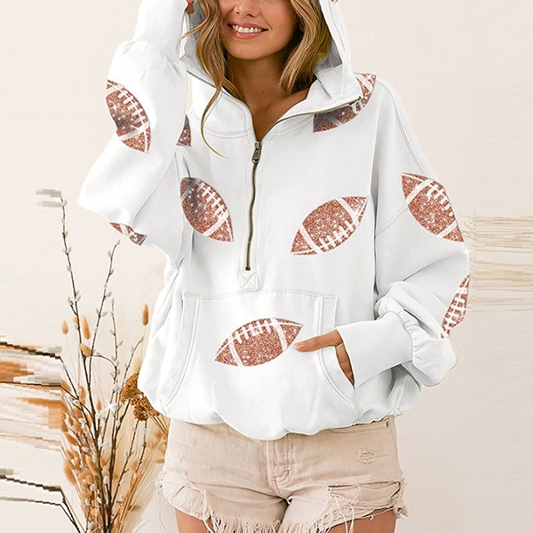 Street Fashion Bling-bling Rugby Ball Pattern Half Zipper Long Sleeve Hooded Sweatshirt