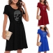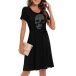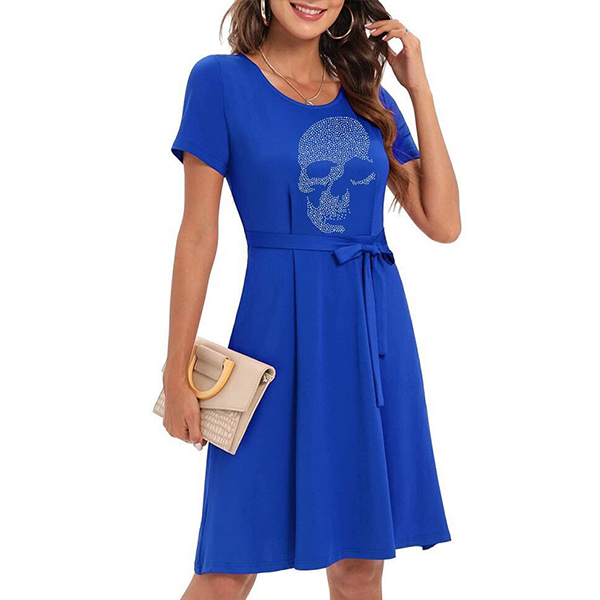 Street Fashion Bling-bling Skull Printed Round Neck Short Sleeve Self-tie Dress