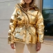 Street Fashion Bright Color Front Zipper Long Sleeve Quilted Jacket
