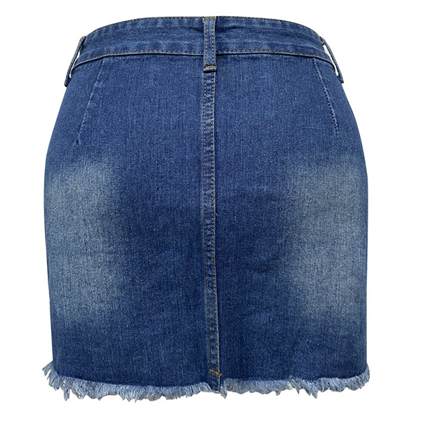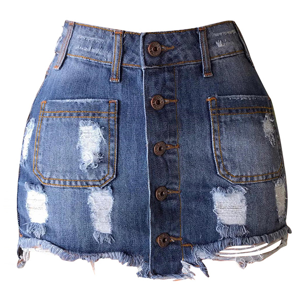 Street Fashion Button Old-wash Distressed Denim Skirts