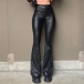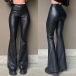 Street Fashion Buttoned High-rise Wide-leg Artificial Leather PU Pants