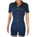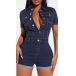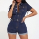 Street Fashion Buttoned Stand Collar Short Sleeve Denim Romper