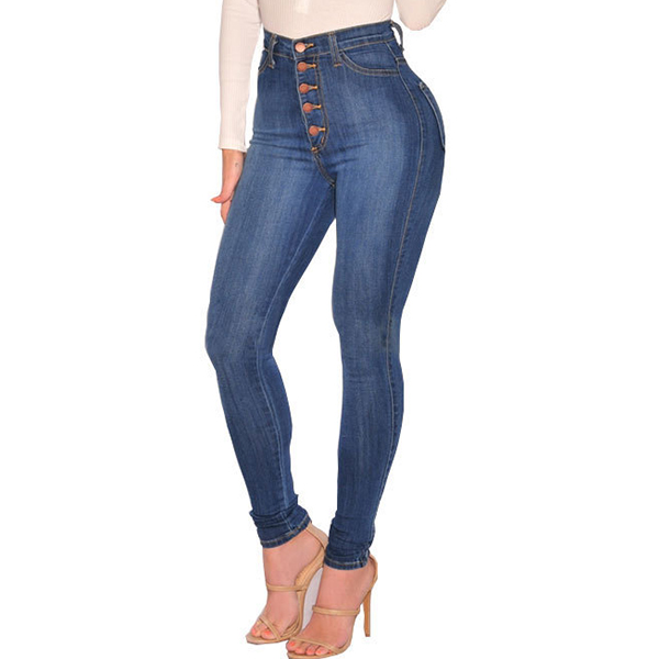 Crafted with high-quality black denim fabric, these skinny jeans offer both durability and a sleek aesthetic. The high-rise waist with buttons design provides a flattering fit, accentuating your curves and elongating your silhouette. Pair them with a graphic tee and sneakers for a casual streetwear look.
