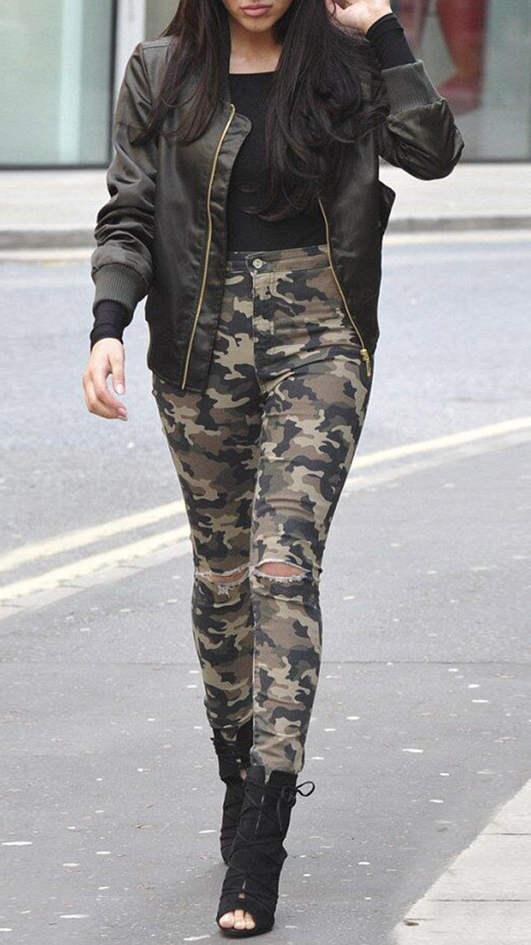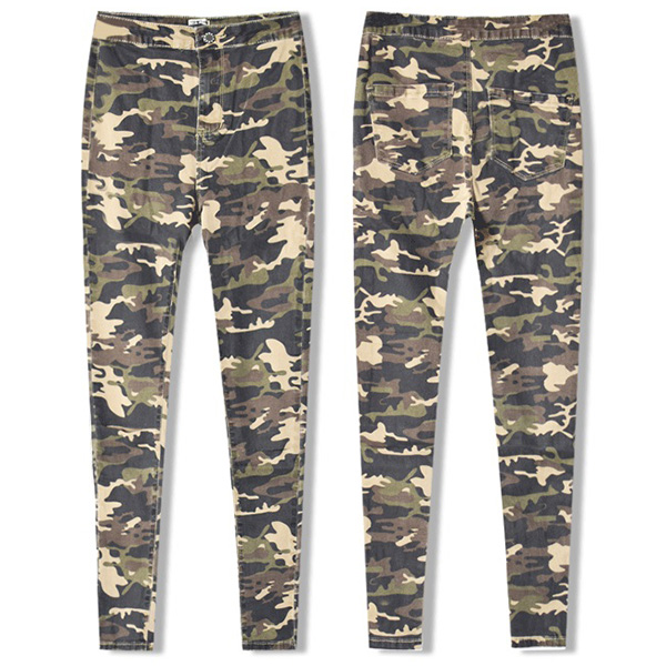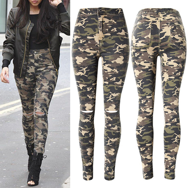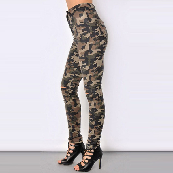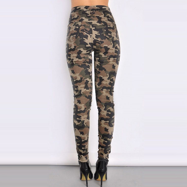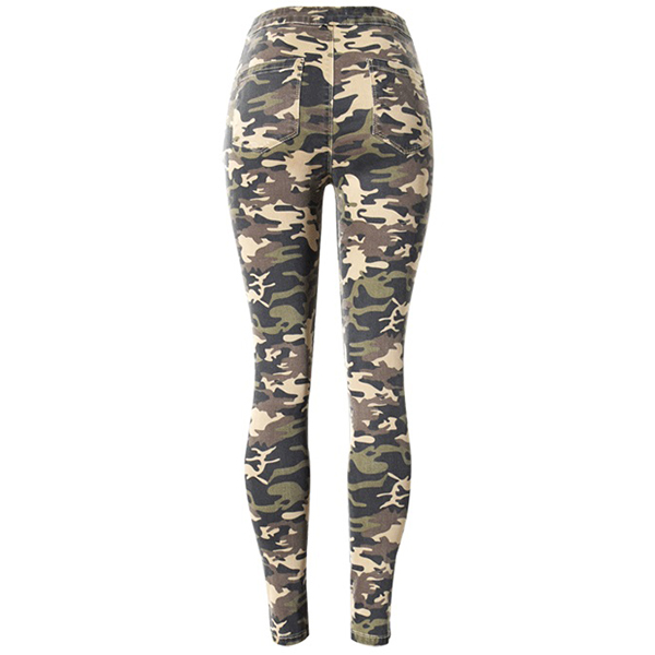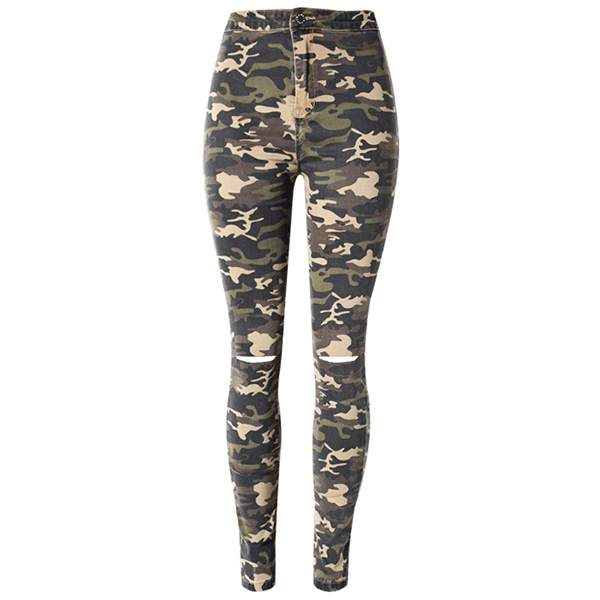 Street Fashion Camouflage Printed Ripped Skinny Denim Jeans