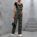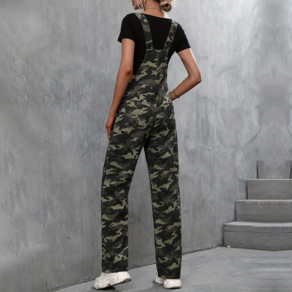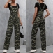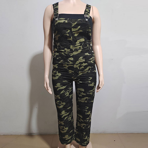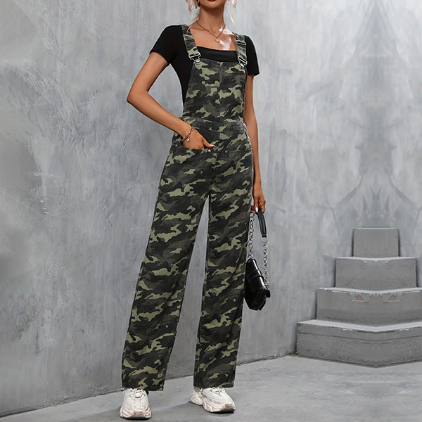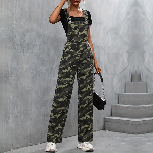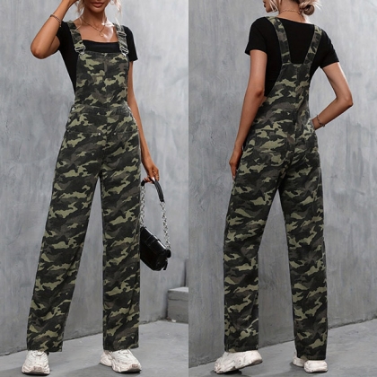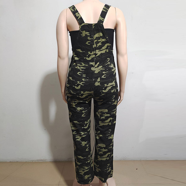 Street Fashion Camouflage Printed Straight-cut Denim Suspender Jumpsuit