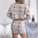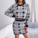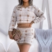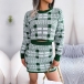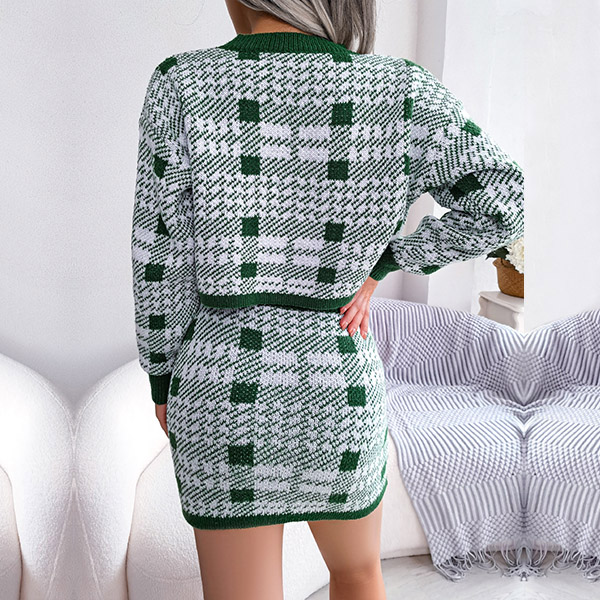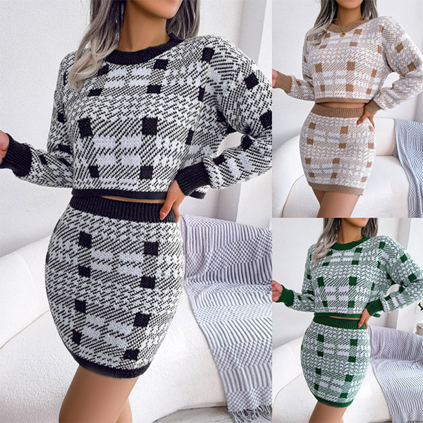 Street Fashion Contrast Color Checkered Knitted Two-piece Set Consist of Crop Sweater and Mini Skirt