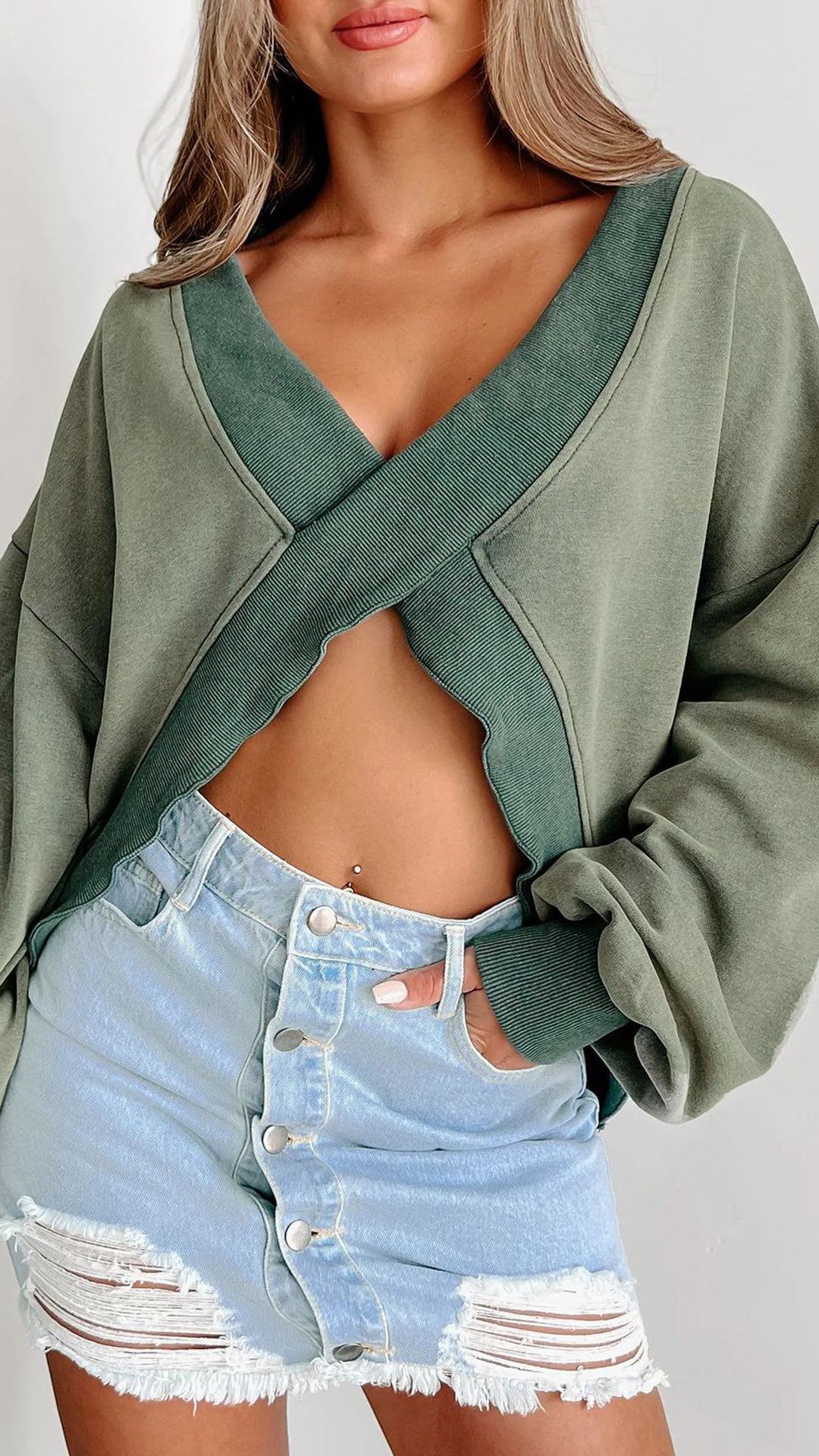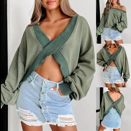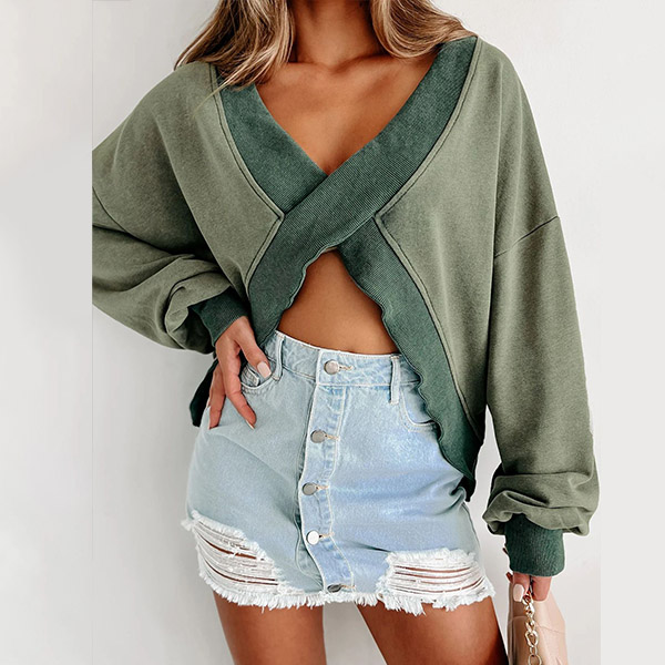 This sweatshirt is the perfect blend of street style and trendy fashion. The contrast color design adds a bold and eye-catching element, making it a standout piece in your wardrobe. The cross cutout detail adds a unique and edgy touch, showcasing a hint of skin in a stylish way. The batwing sleeves provide a relaxed and comfortable fit, perfect for a casual and laid-back look.