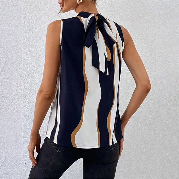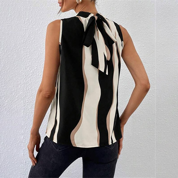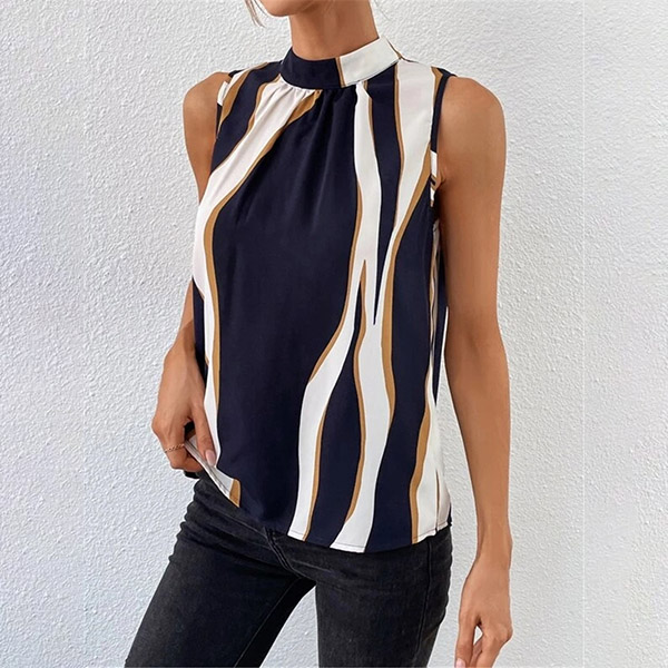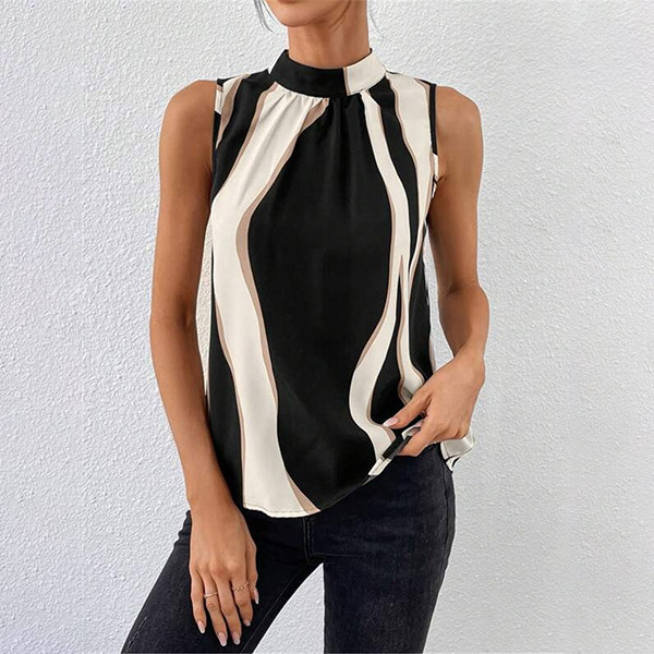 Street Fashion Contrast Color Mock Neck Sleeveless Shirt