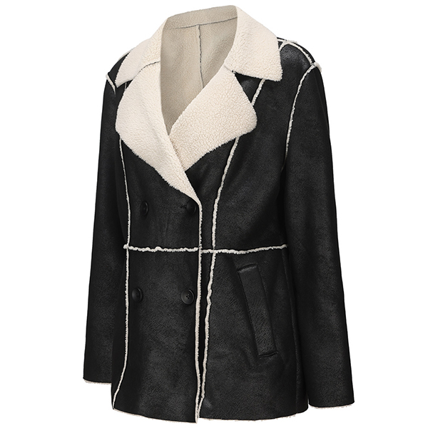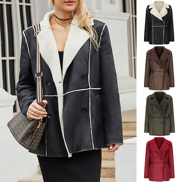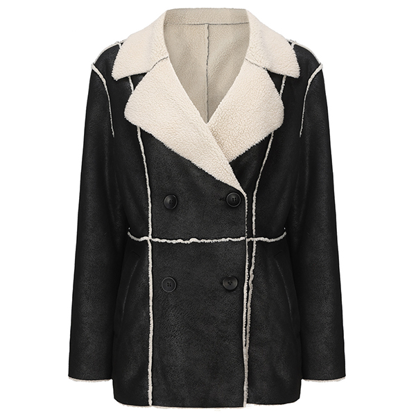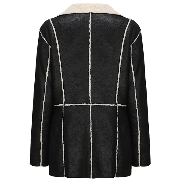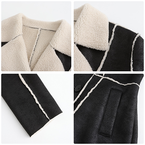 Street Fashion Contrast Color Notch Lapel Long Sleeve Plush Lined Suede Jacket