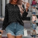 This shirt combines edgy style and unique design elements for a fashion-forward look. The contrast color print adds a bold and eye-catching touch, while the lace splicing along the cuff detail brings a feminine and playful twist. Pair it with jeans, skirts, or shorts for a chic and statement-making ensemble.