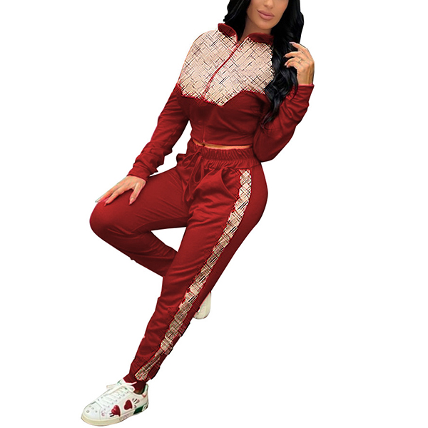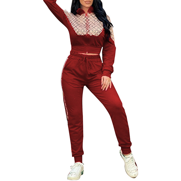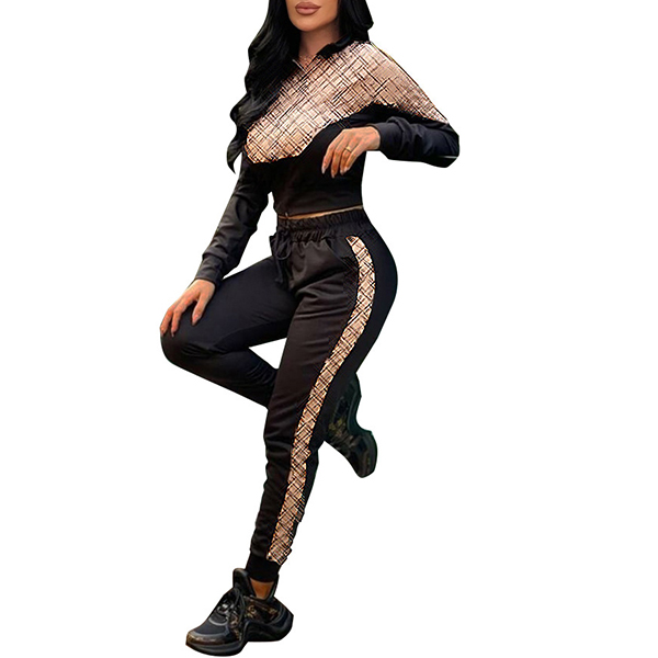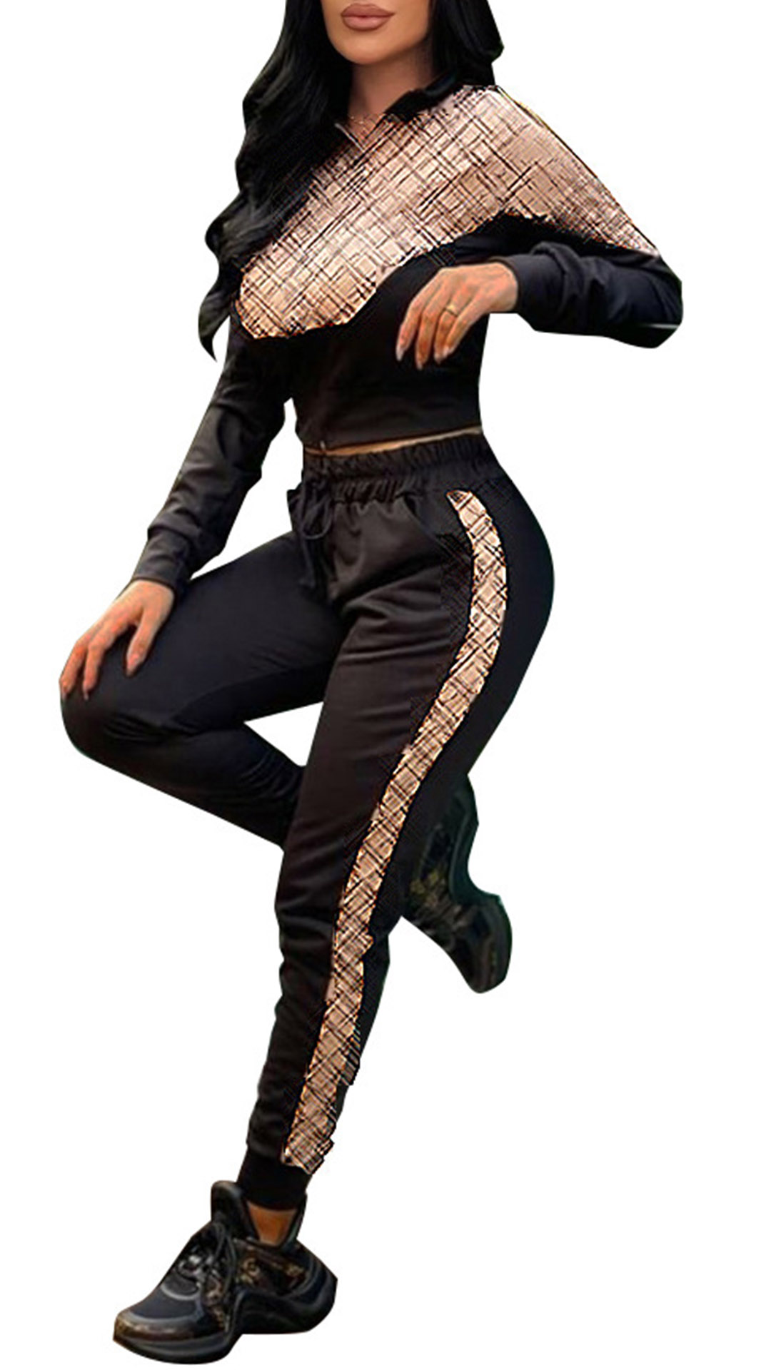 This two-piece set consists of a Crop Jacket and Drawstring Sweatpants for a fashionable and edgy look. Whether you're going for a casual streetwear look, running errands, or simply want to add an edgy touch to your outfit, this contrast color printed two-piece set is the perfect choice.