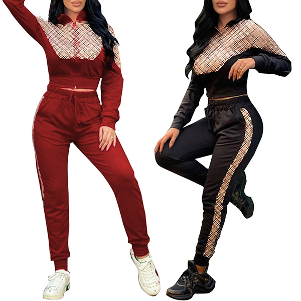 Street Fashion Contrast Color Printed Two-piece Set Consist of Crop Jacket and Drawstring Sweatpants