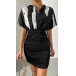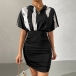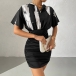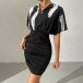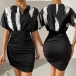 Street Fashion Contrast Color Printed V-neck Batwing Sleeve Bodycon Dress